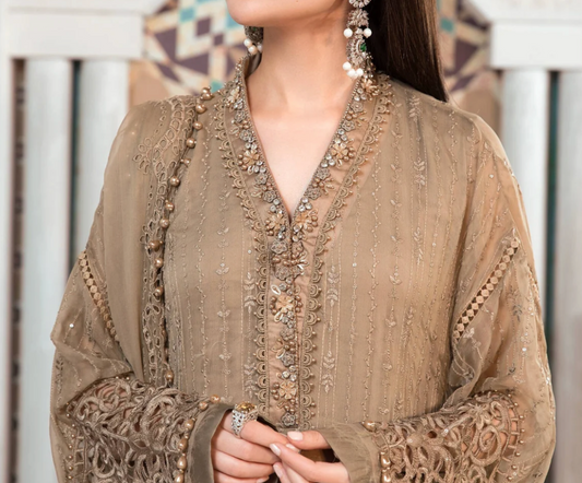 Coffee color/Embroidered Pure Chiffon 3 pc suitRegular price $220.00 CADRegular priceUnit price / per-