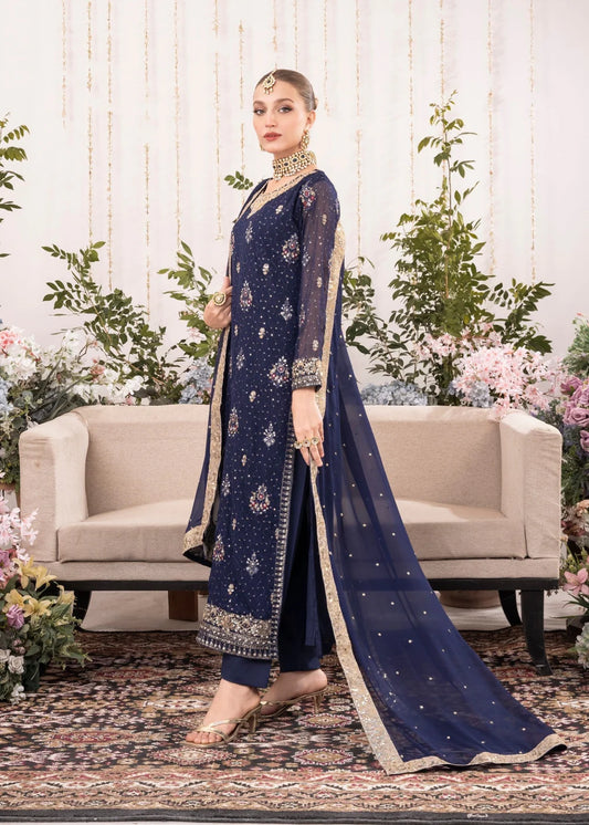 Chiffon Dark Royal Blue 3 pcs long kurta with trousers & DupattaRegular price $145.00 CADRegular priceUnit price / per-